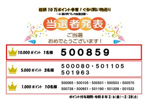 買い物巡りのWチャンス当選者を発表します。